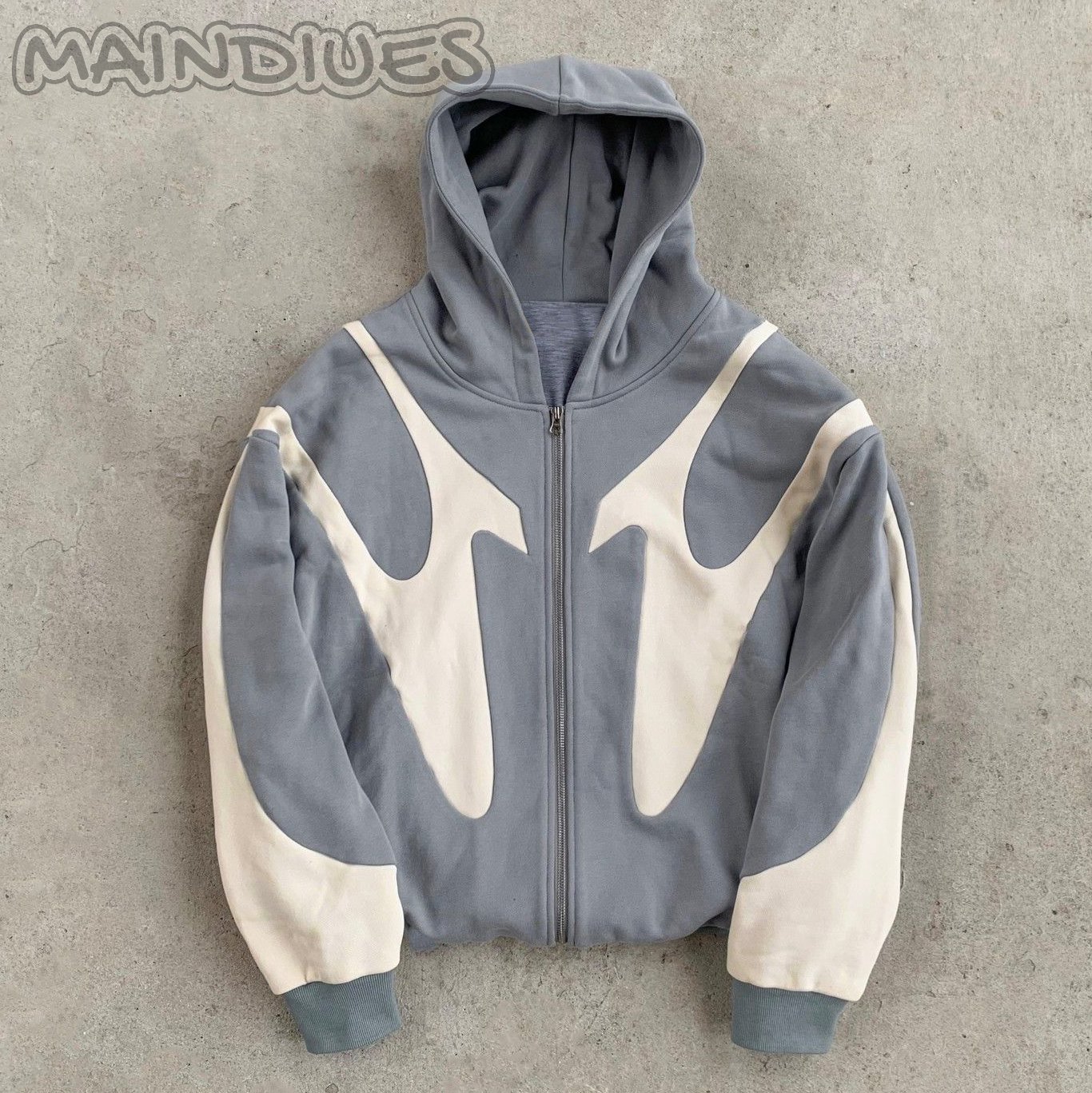 Stitching Color Print Long Sleeve Zipper Hoodies